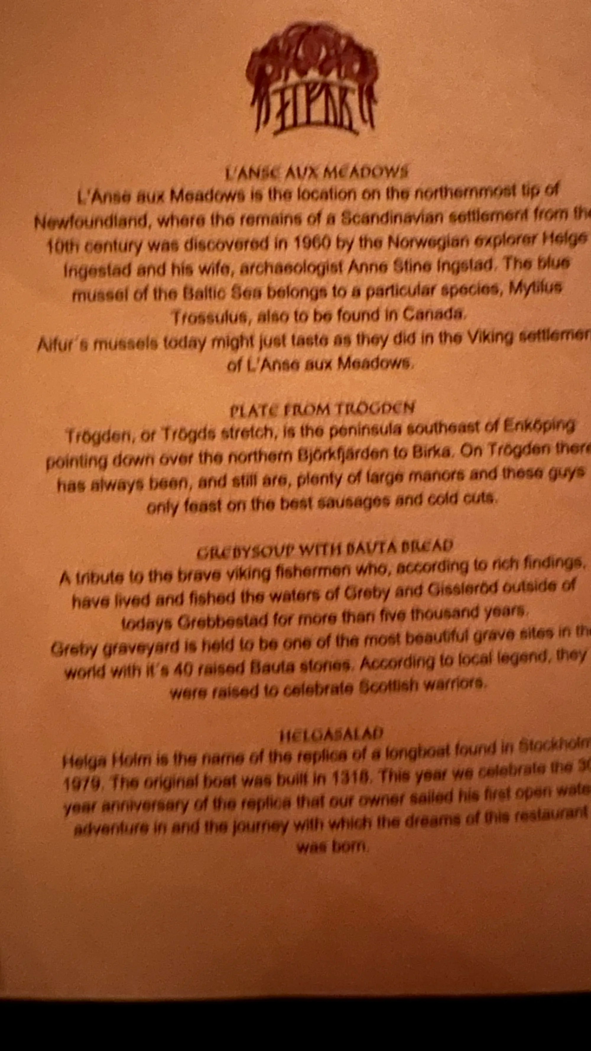 Le clou du dîner est l’unique restaurant viking au monde, « Aifur« , où nous dégustons renne, élan, cerf, légumes anciens & hydromel, tout en plongeant dans une ambiance historique grâce à des serveurs qui ambiance à la corne & des explications passionnantes sur les plats. Experience mémorable !