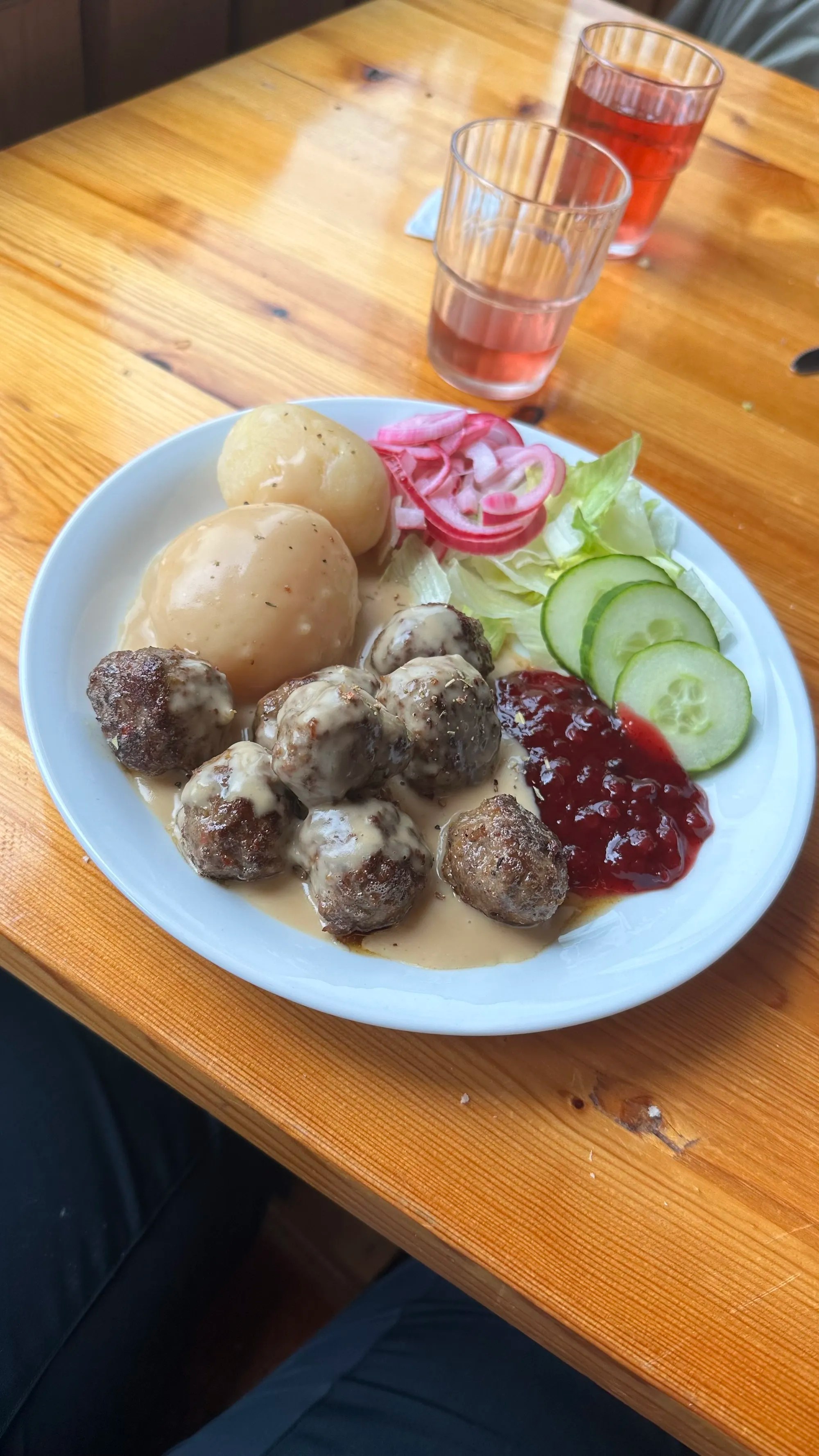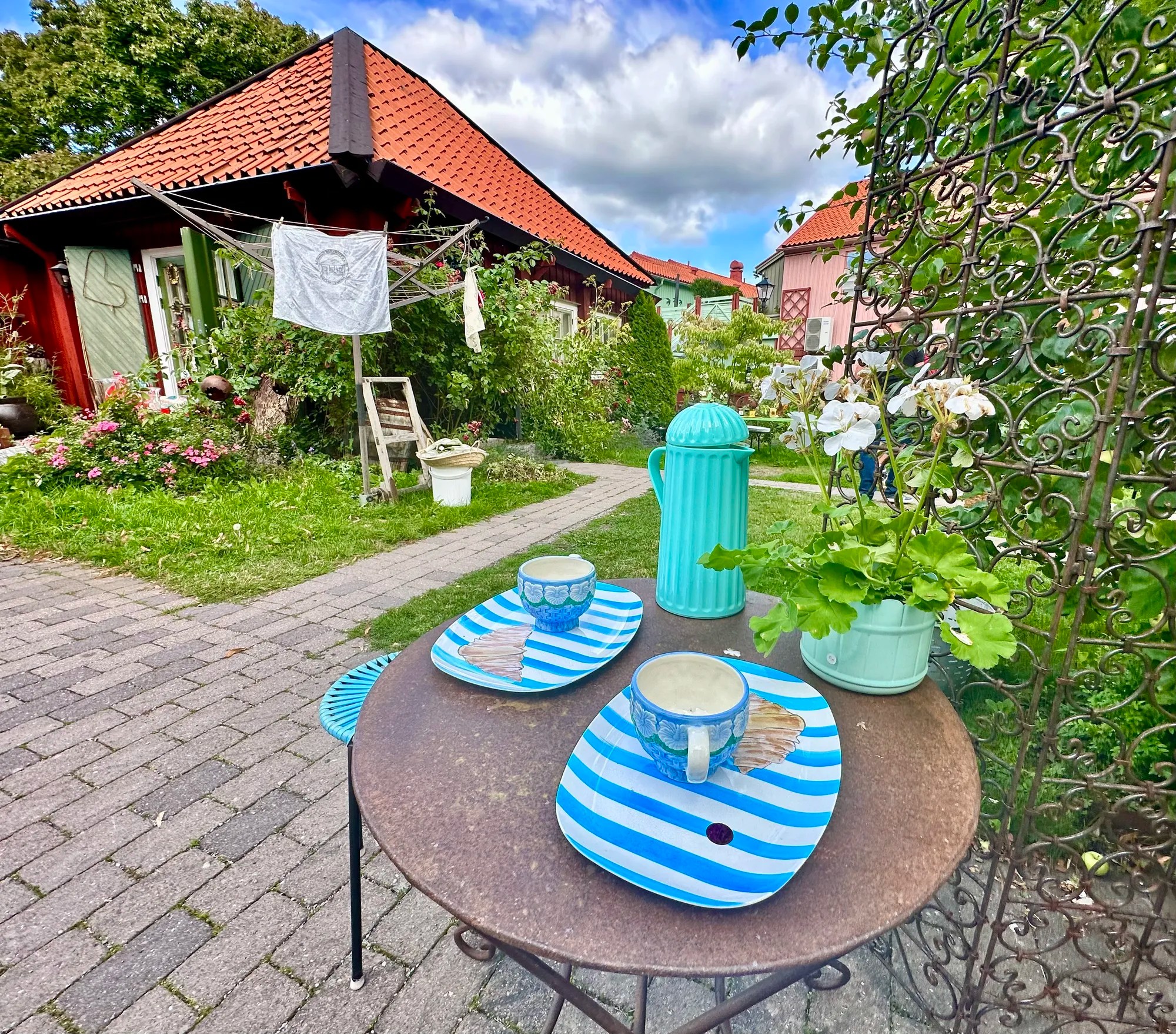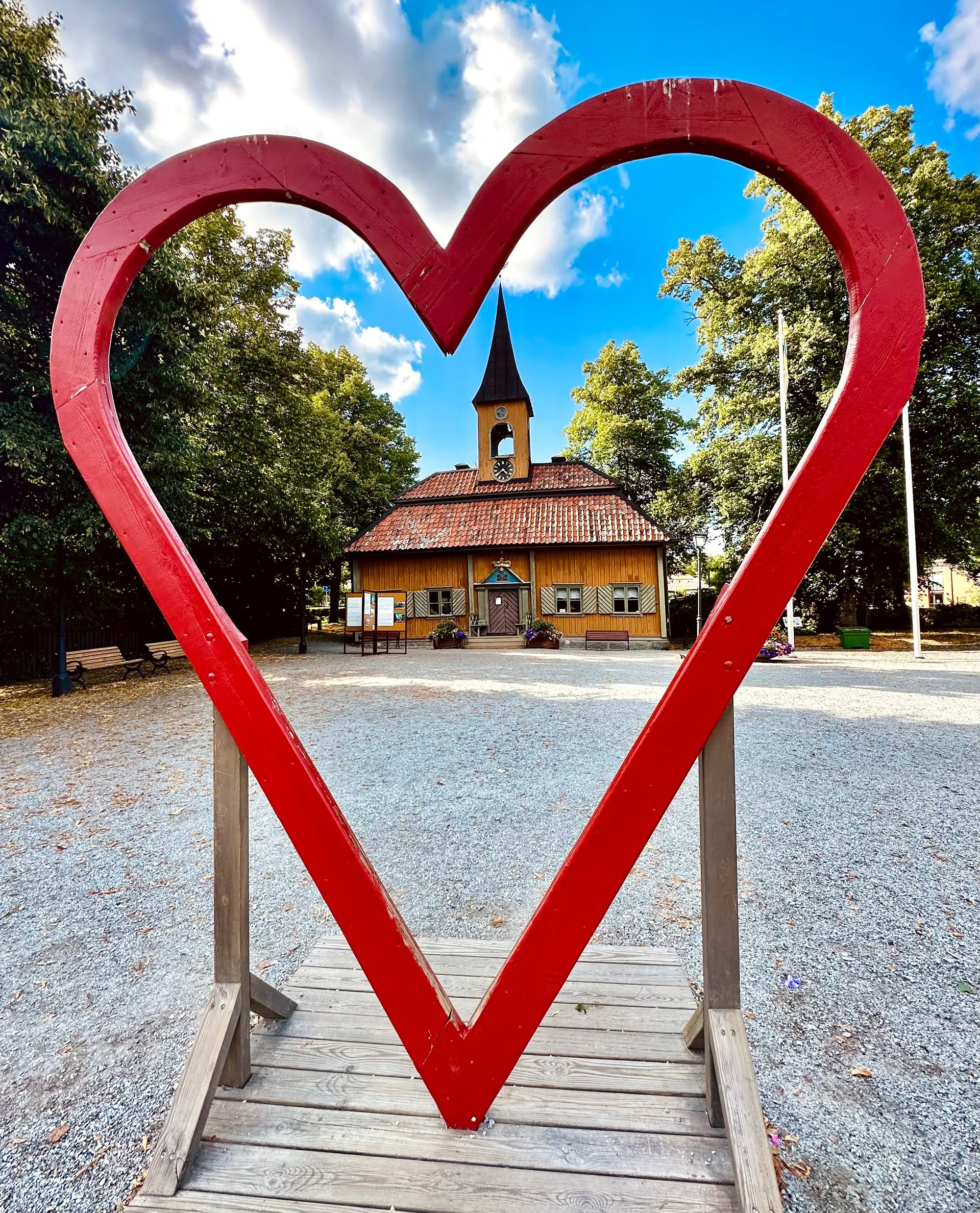 Avant d’arriver au village on se ballade dans la ville périphérique: Gävle. Il y a des anciennes habitations colorées et bien préservées pour se balader, on décide de rentrer dans ce restau « Pincho » tout coloré et lumineux rose… ça nous intrigue ! Tout en décor de cirque jusqu’aux cage & néons , on découvre un fast food populaire ou les suédois fêtent leurs anniversaires… rien que 9 quand on y est ! Petite anecdote: les suédois ne chantent pas « joyeux anniversaire « mais « on espère que tu vivras 100 ans » … original !