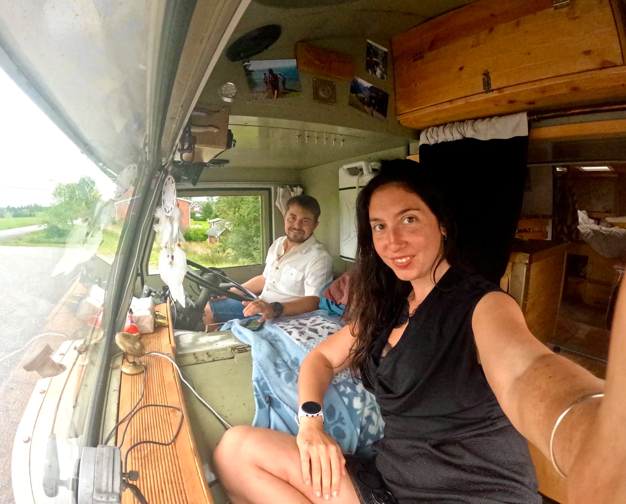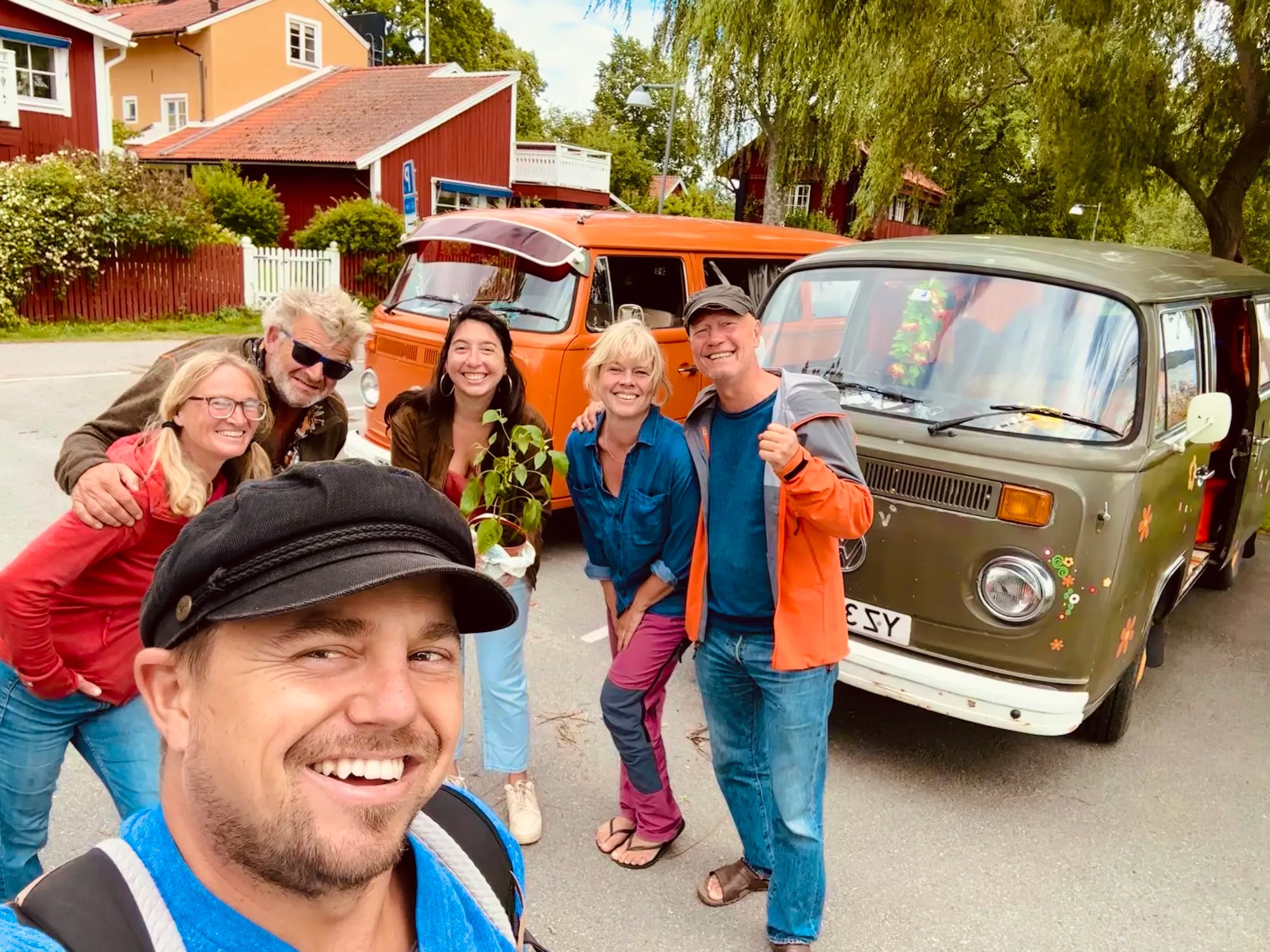 La surprise ne s’arrête pas là : nous rencontrons deux magnifiques VW norvégiens: « The Happy Camper » et « Mario », appartenant à Erik, Anne-Lise, Andreas et Lena. Nous partageons de bons délires hippies avec eux et repartons avec un nouveau plant de piment pour Woody !