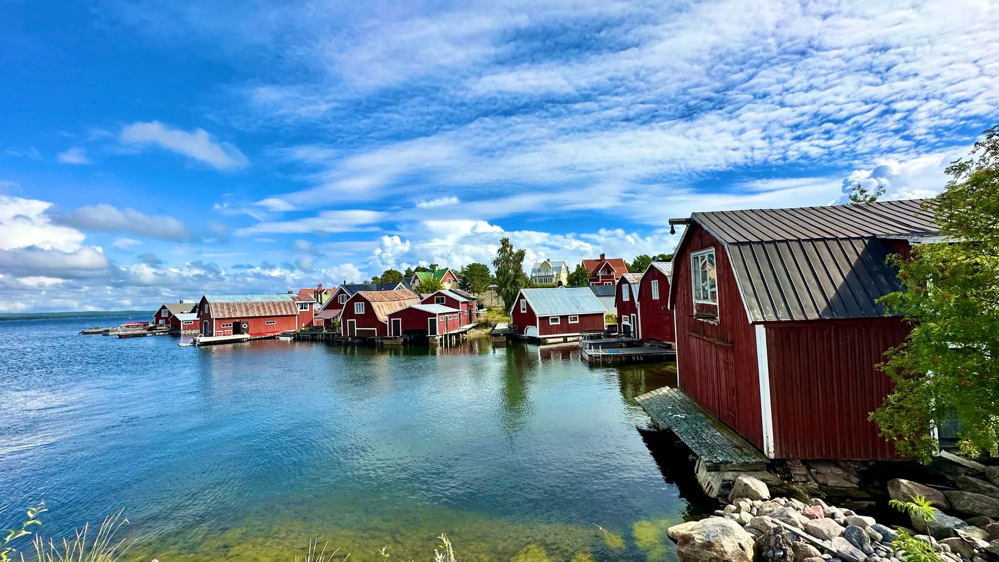 Puis direction le Petit village de pêcheur typique aux maisons rouges suédoises et aux ports omniprésents ! Et aussi entouré de bunkers construits… dans les années 50 pour la guerre froide (on a pas la même histoire c’est vrai au final!)