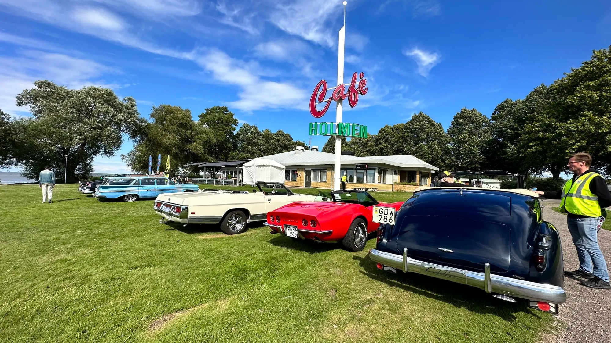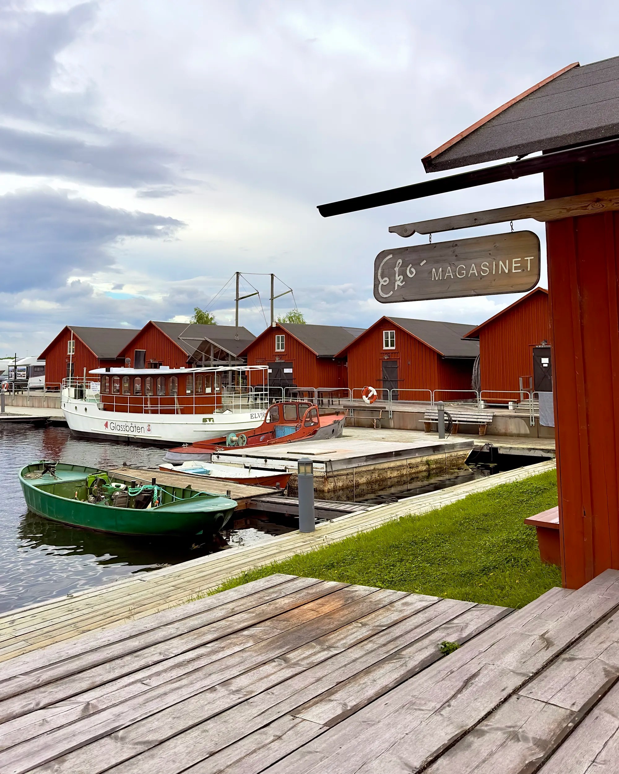 Après avoir perdu notre GoPro & perdue une journée entière à chercher , nous trouvons refuge dans une charmante ville de pêcheurs Mariestad. Pour se faire pardonner Dan invite Estelle dans un restaurant typique suédois sur le port. Il y attrape aussi son 1e brochet & nous découvrons des bancs balançoires partout, des street market rouges suédois & une expo de voitures vintage américaines.
