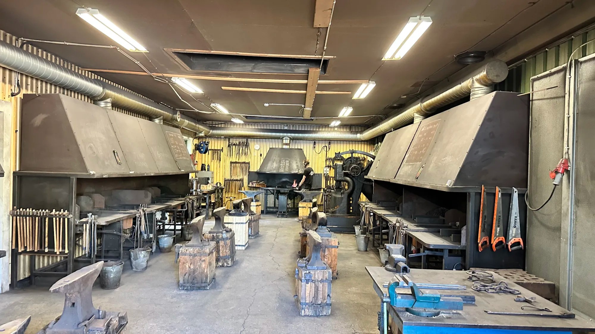 Puis on découvre la communauté de « Gransfors Bruh » plus grand centre artisanat de Hache suédois ! Découverte de la petite usine, des fabrications l’artisanat d’autres objets & on s’amuse au lancer de hache !