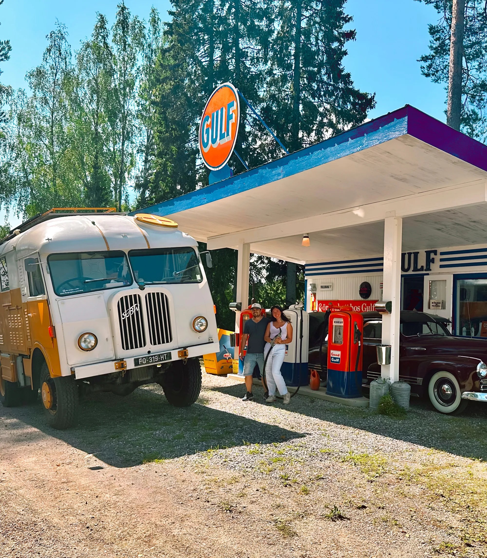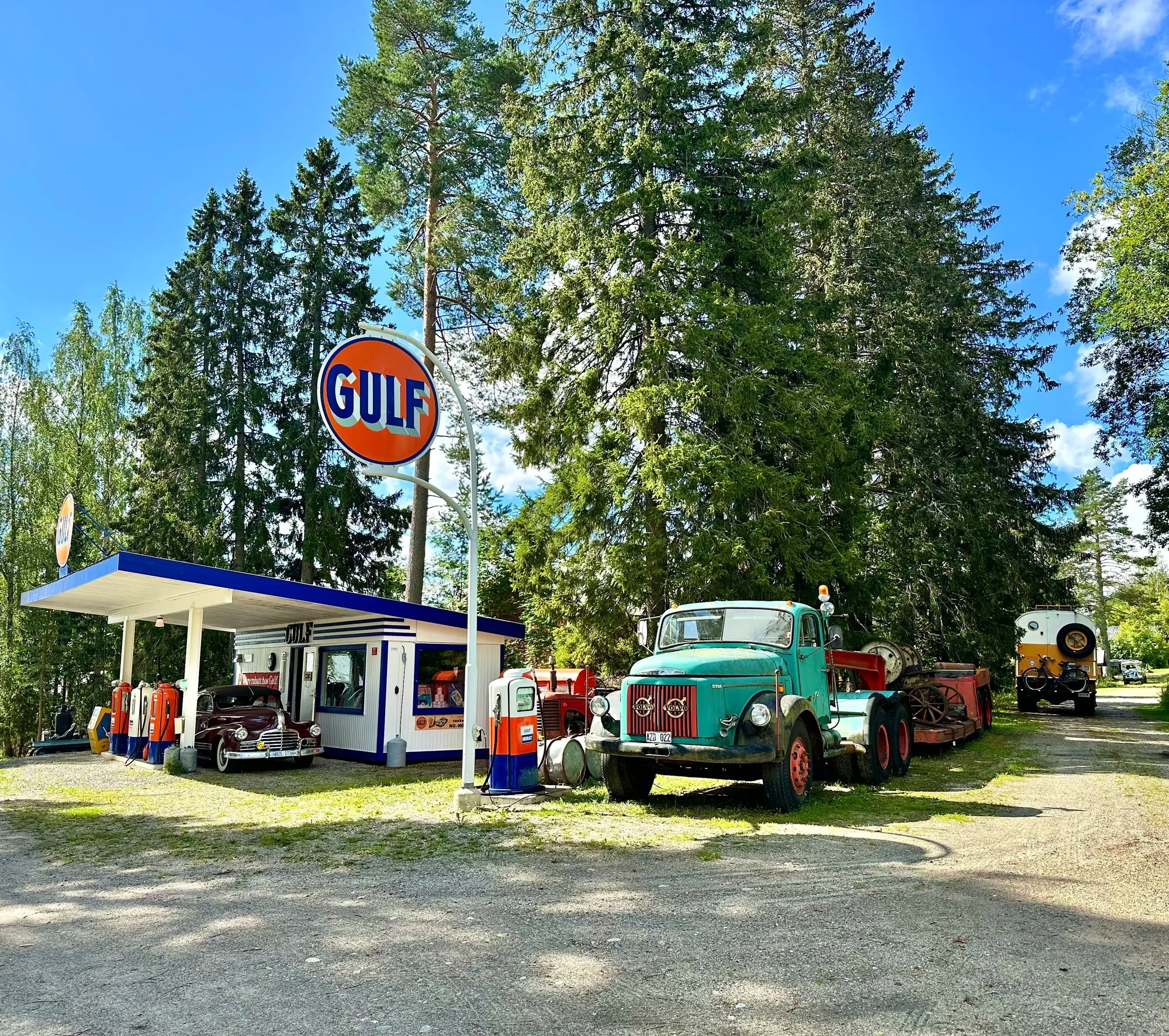 On sent qu’on a fait un saut dans le passé ! On croise sur la route une station service «Gällsta Bil & Service AB » des années 50 entièrement construite par un collectionneur de voitures… parfait pour Woody!