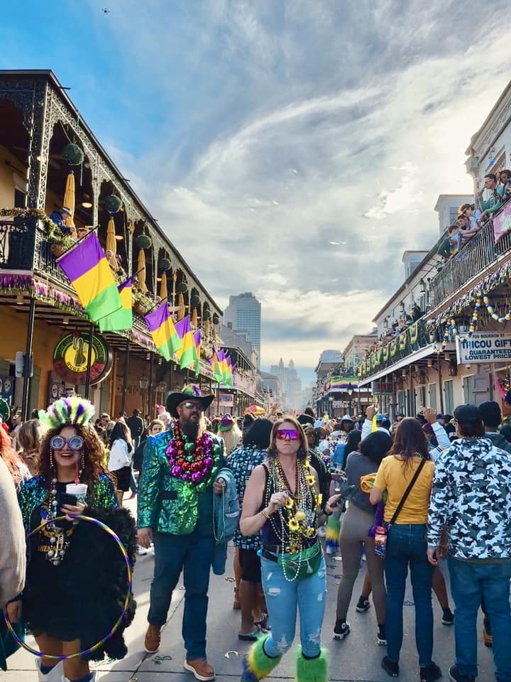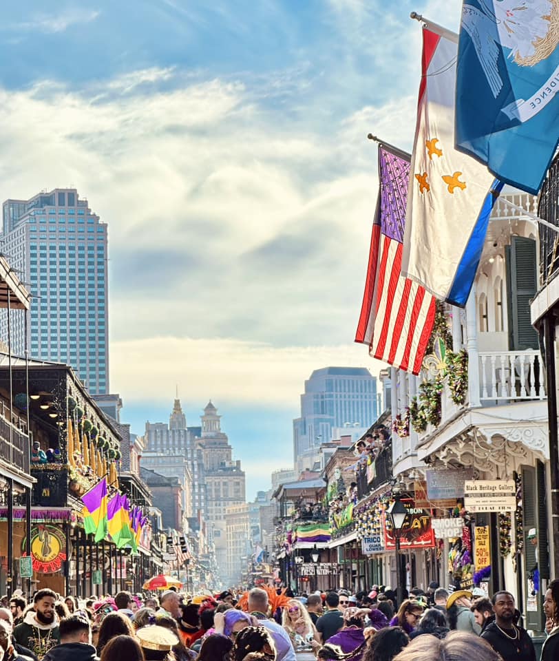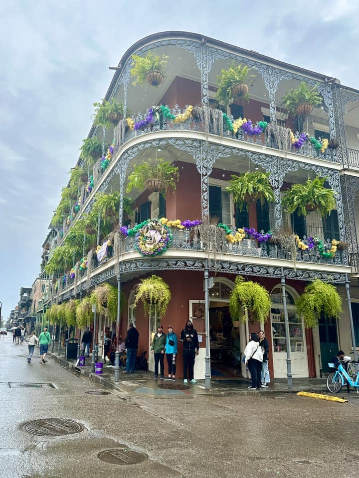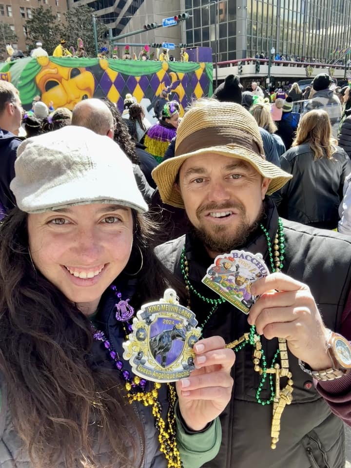 On a plongé tête la première dans le carnaval de Mardi Gras en Louisiane ! À la Nouvelle-Orléans, absorbé dans l’une des fêtes les plus folles du monde, avec ses plusieurs mois de célébrations parées de mauve, vert et or ! Les rues étaient en ébullition avec des parades endiablées, des chars historiques distribuant des cadeaux à tout-va, et des balcons ornés où les gens se lançaient des colliers, sans oublier les célèbres « King cakes » de toutes les couleurs !