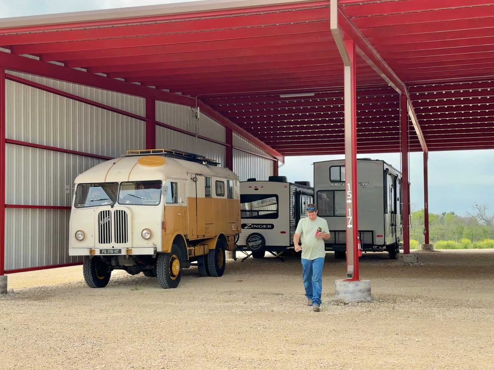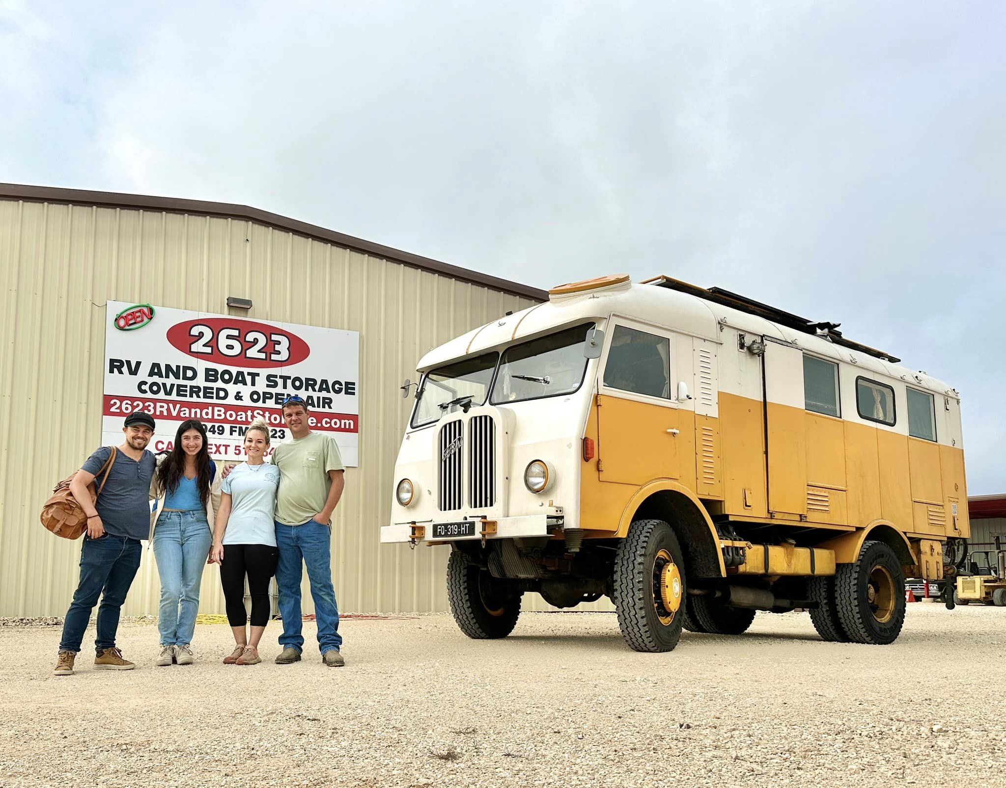 Gary Straight, que nous avions rencontré au Truck show en Floride, à fait appel à son réseau et nous a trouvé une solution pour stocker Woody en moins d’1h ! Il a eu tout plein de volontaires !